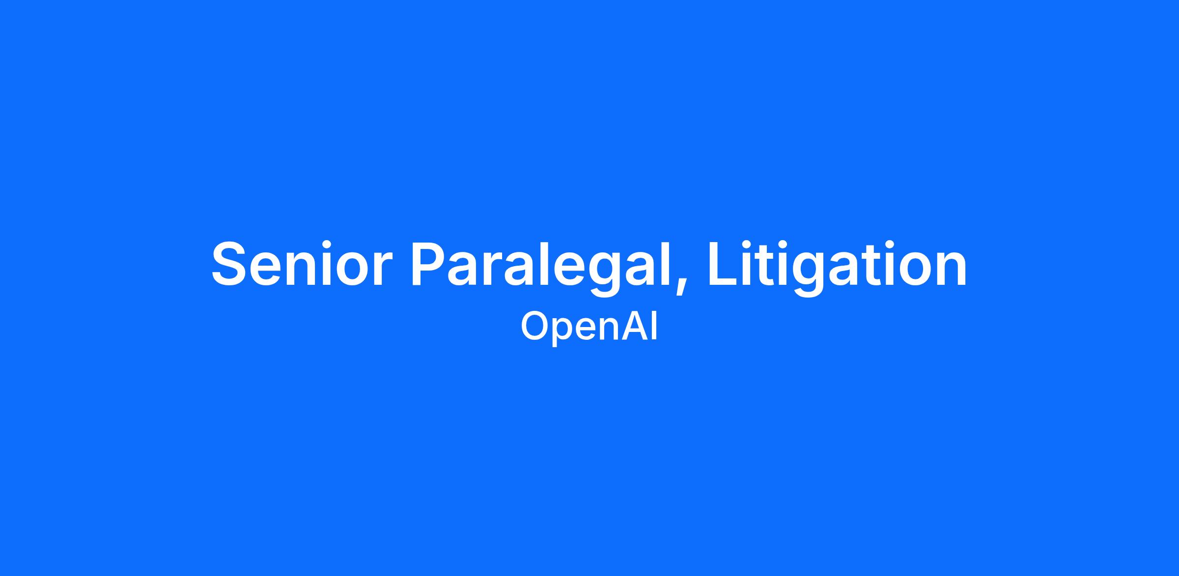 We’re growing our world-class Litigation and Regulatory team and seek an experienced Senior-level Paralegal to support litigation, dispute resolution, and certain regulatory matters related to our business. This role is highly cross-functional across OpenAI, including work across our Legal, Communications, Global Affairs, and Executive teams. In addition, you will help develop/improve processes and programs to help our team operate efficiently.