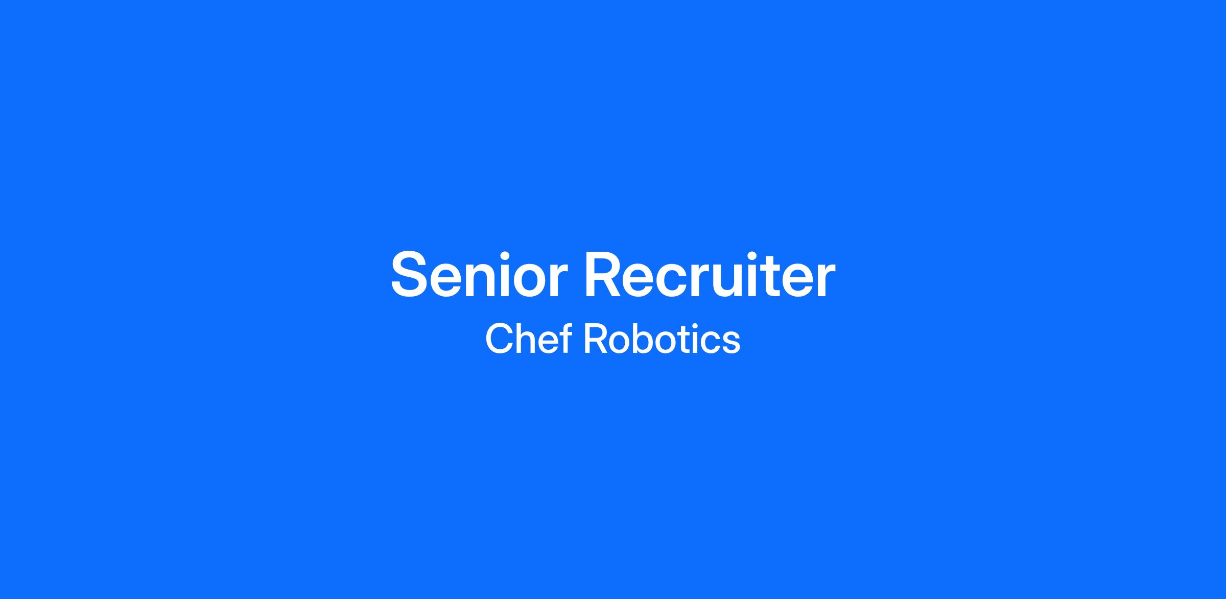 As our Senior Recruiter you will be responsible for helping Chef scale by identifying, engaging, and hiring world-class talent. You’ll partner closely with hiring managers across engineering, operations, and G&A functions to ensure we build a high-performing, values-aligned team. This is an exciting opportunity to join a company at an inflection point and shape our hiring practices from the ground up.Success in the role requires experience in, and a commitment to, keeping an extremely high bar for hiring as well as the grit, organization, and indefatigable nature to build a healthy pipeline of great talent. You should be a builder and a culture champion who is able to work with a high-talent team to create a hiring process and a company that supports top talent. Experience recruiting for startups and for software, physical (hardware) AI enabled companies is strongly preferred.