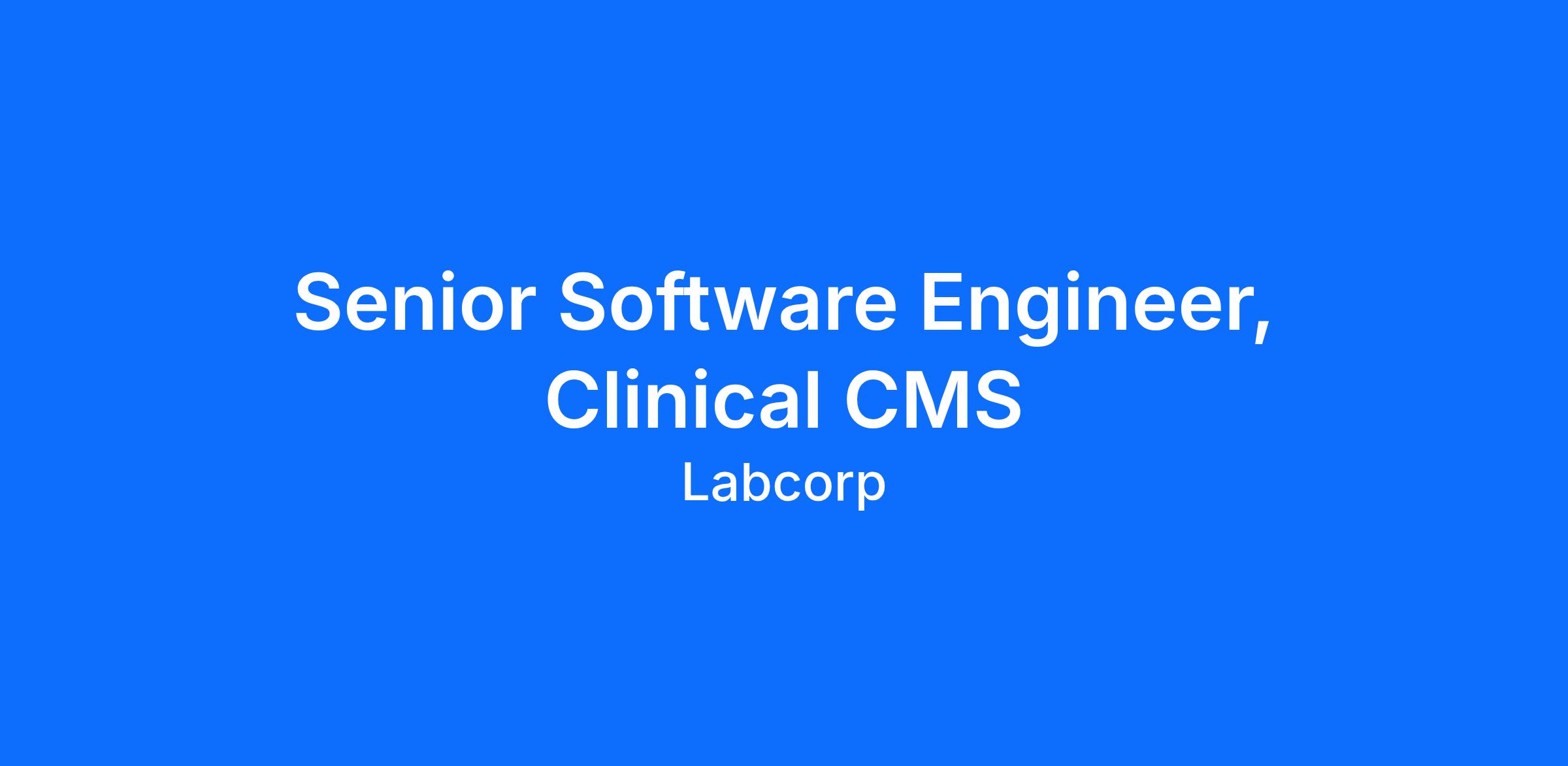 Labcorp is seeking a Senior Software Engineer, Clinical CMS to join our Labcorp Genetics team.