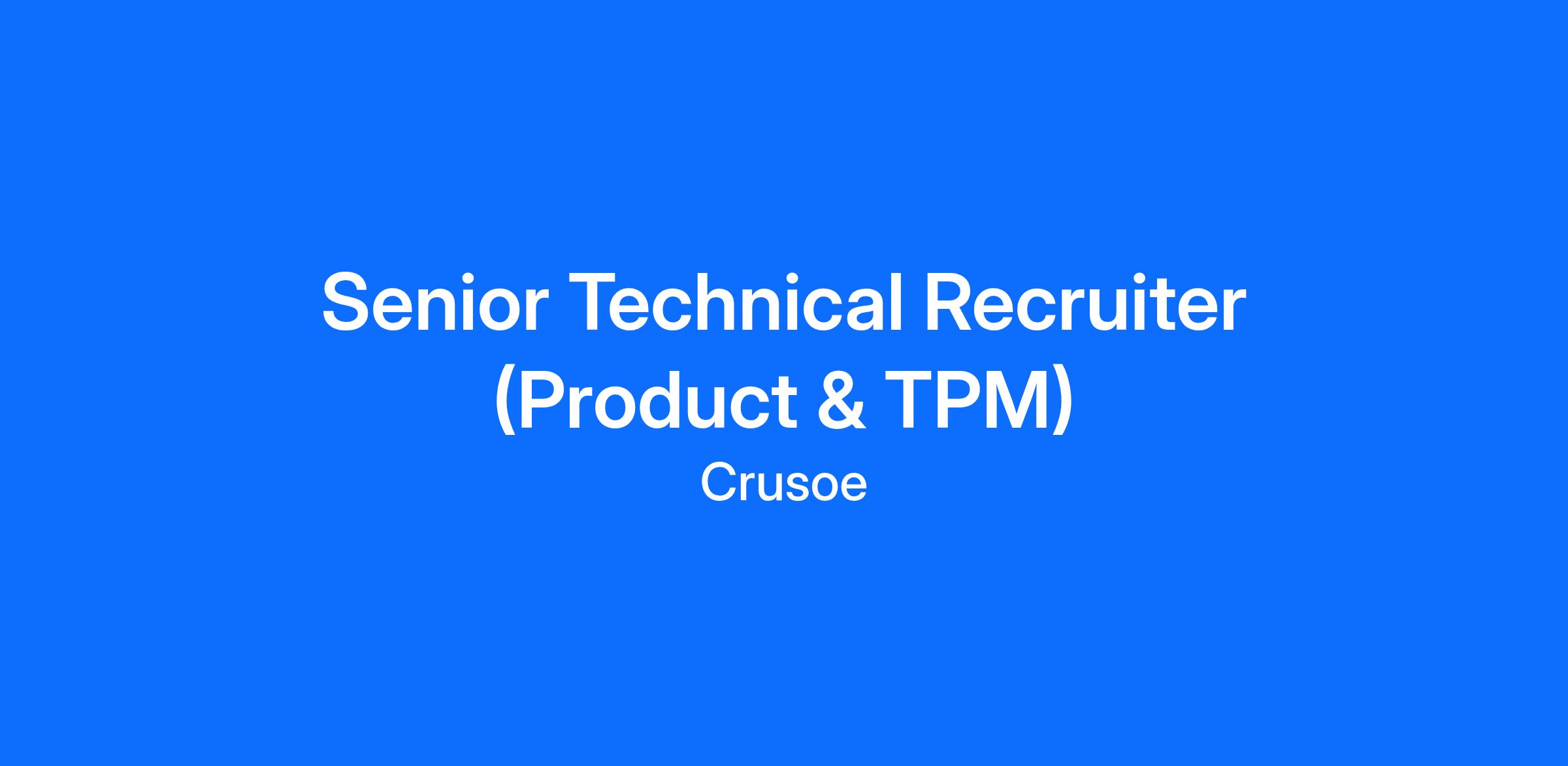We are seeking a Senior Technical Recruiter to join our growing Product & Platform organization. This individual will serve as the primary owner of Product Manager (PM) and Technical Program Manager (TPM) hiring, partnering closely with senior product, engineering, and infrastructure leaders.
