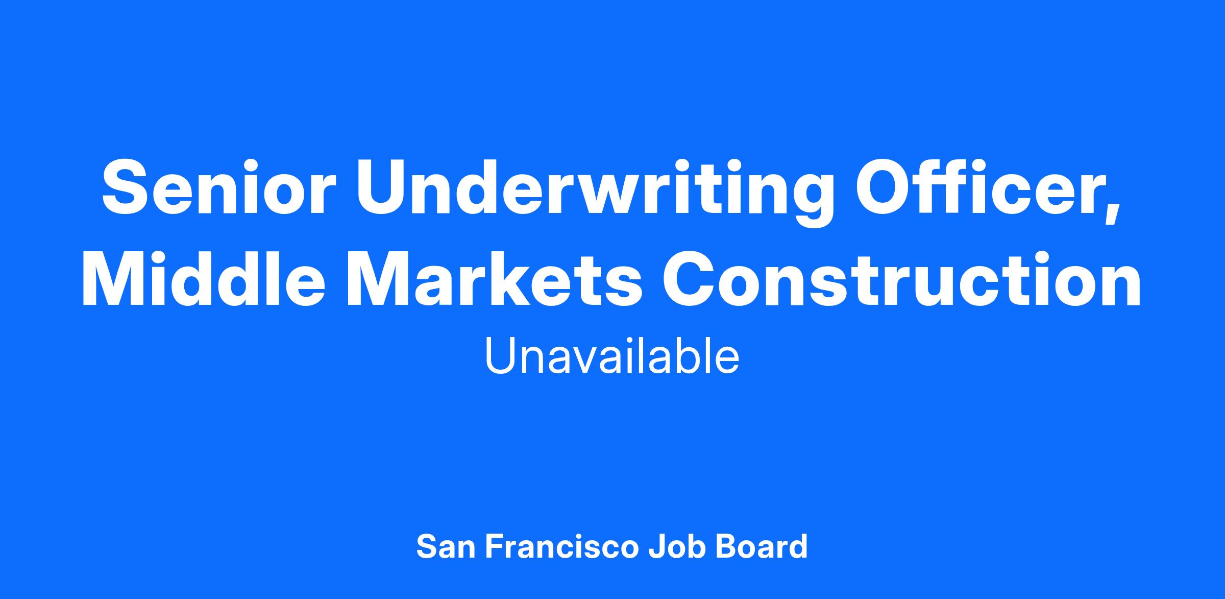 The Senior Underwriting (UW) Officer, Middle Market Construction will report to the Executive Underwriting Officer of Middle Market Construction. The Senior Underwriting Officer, Middle Market Construction will work with the leadership team, deliver technical expertise and serve as point of contact for the frontline underwriting teams, for all questions, key decisions, or referrals.