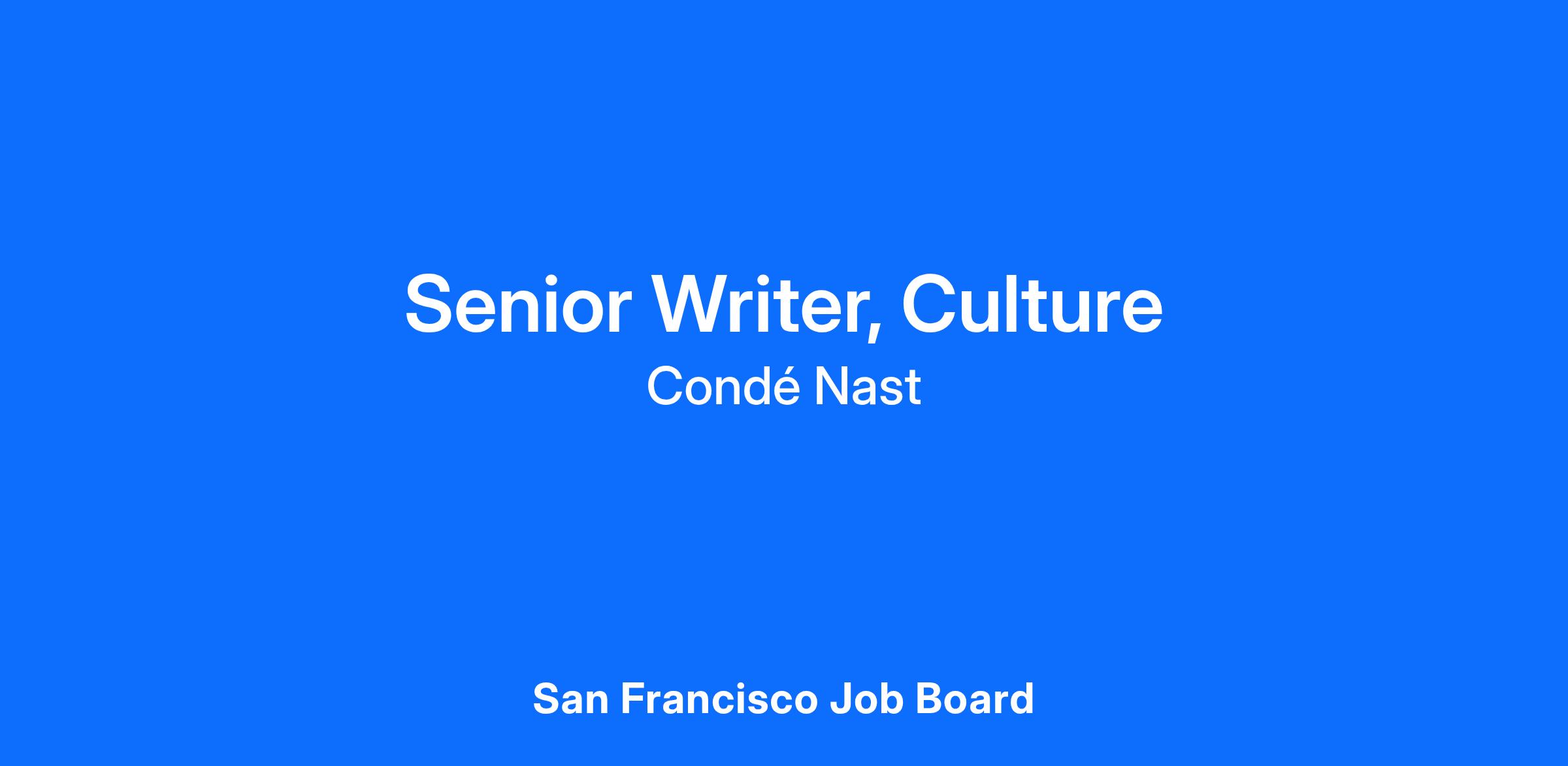 New York, NYWIRED is seeking an experienced senior writer for our culture desk. Reporting to WIRED’s Director of Consumer Tech & Culture, you’ll cover the creators and communities that shape the internet every day.