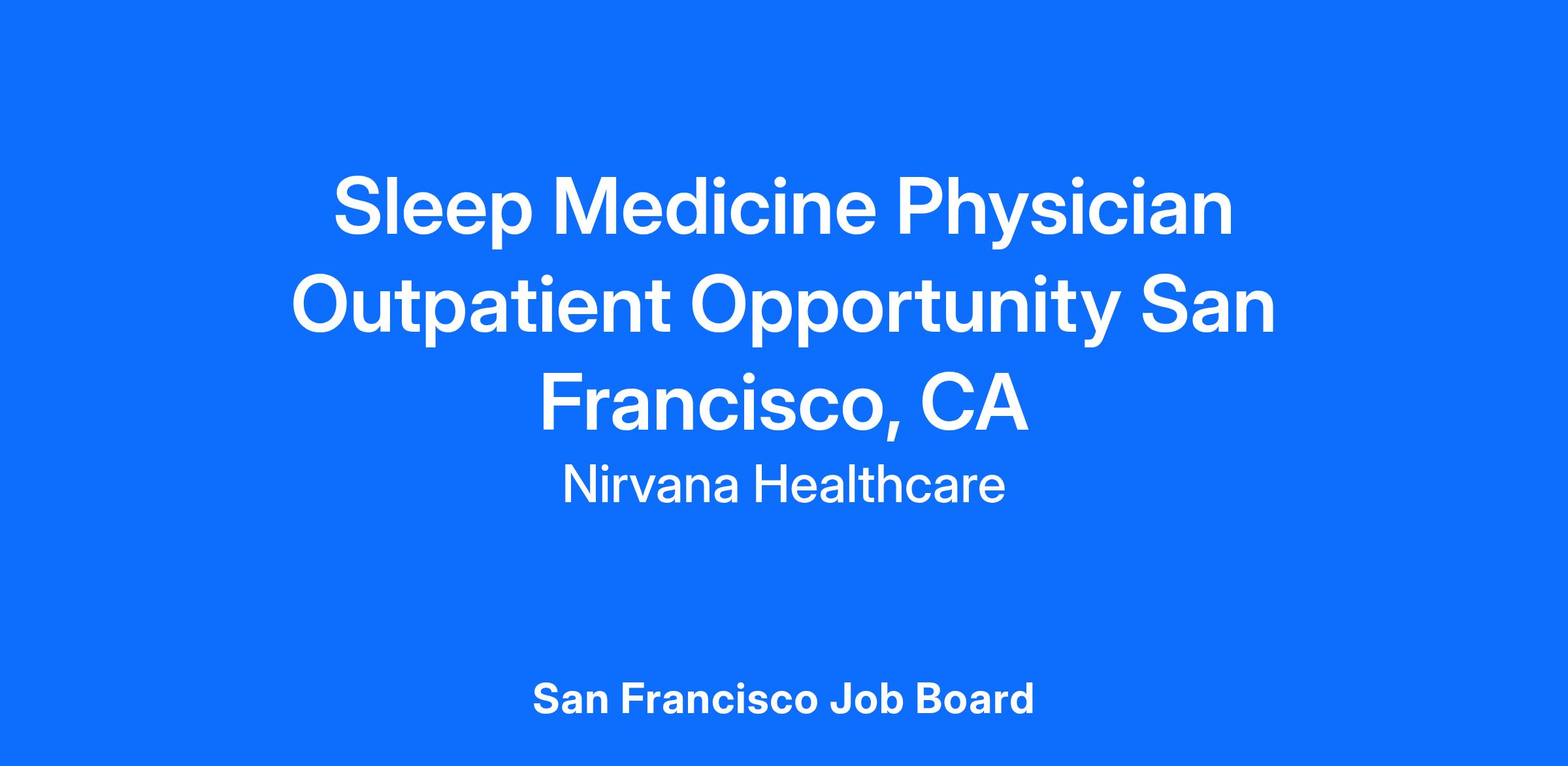 Sleep Medicine Physician Outpatient Opportunity San Francisco, CA