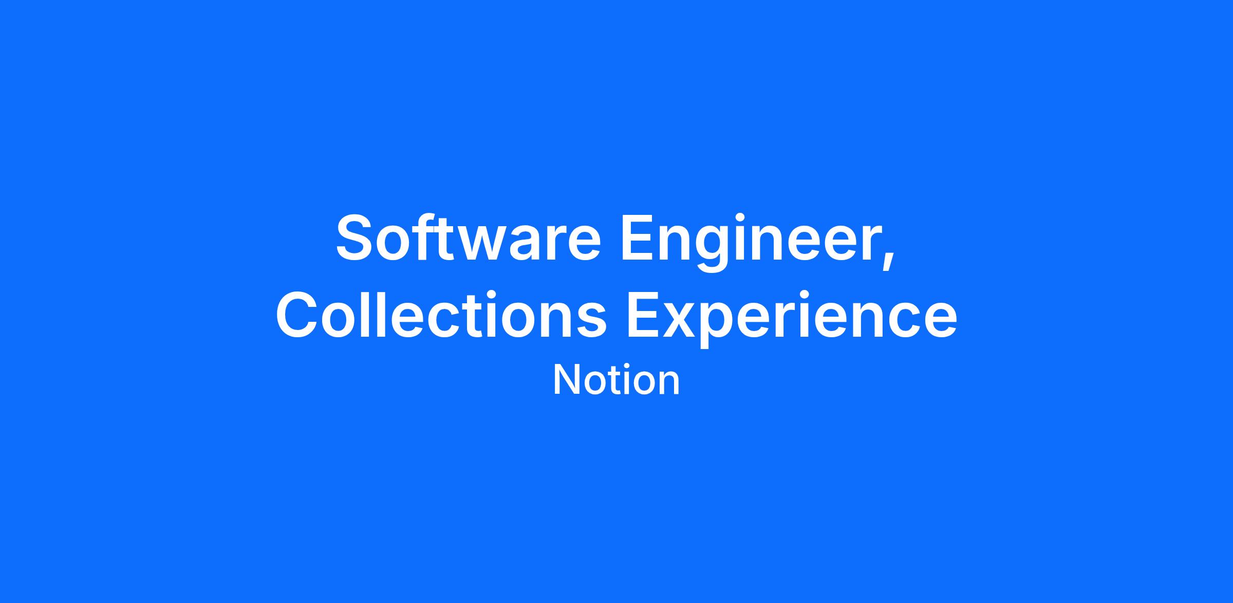 Collections Experience owns the product experience for Notion’s database block and everything on top of it: properties, views, forms, permissions, and many more features. If you’ve ever typed /database in a Notion page, you’ve already used something our team built.