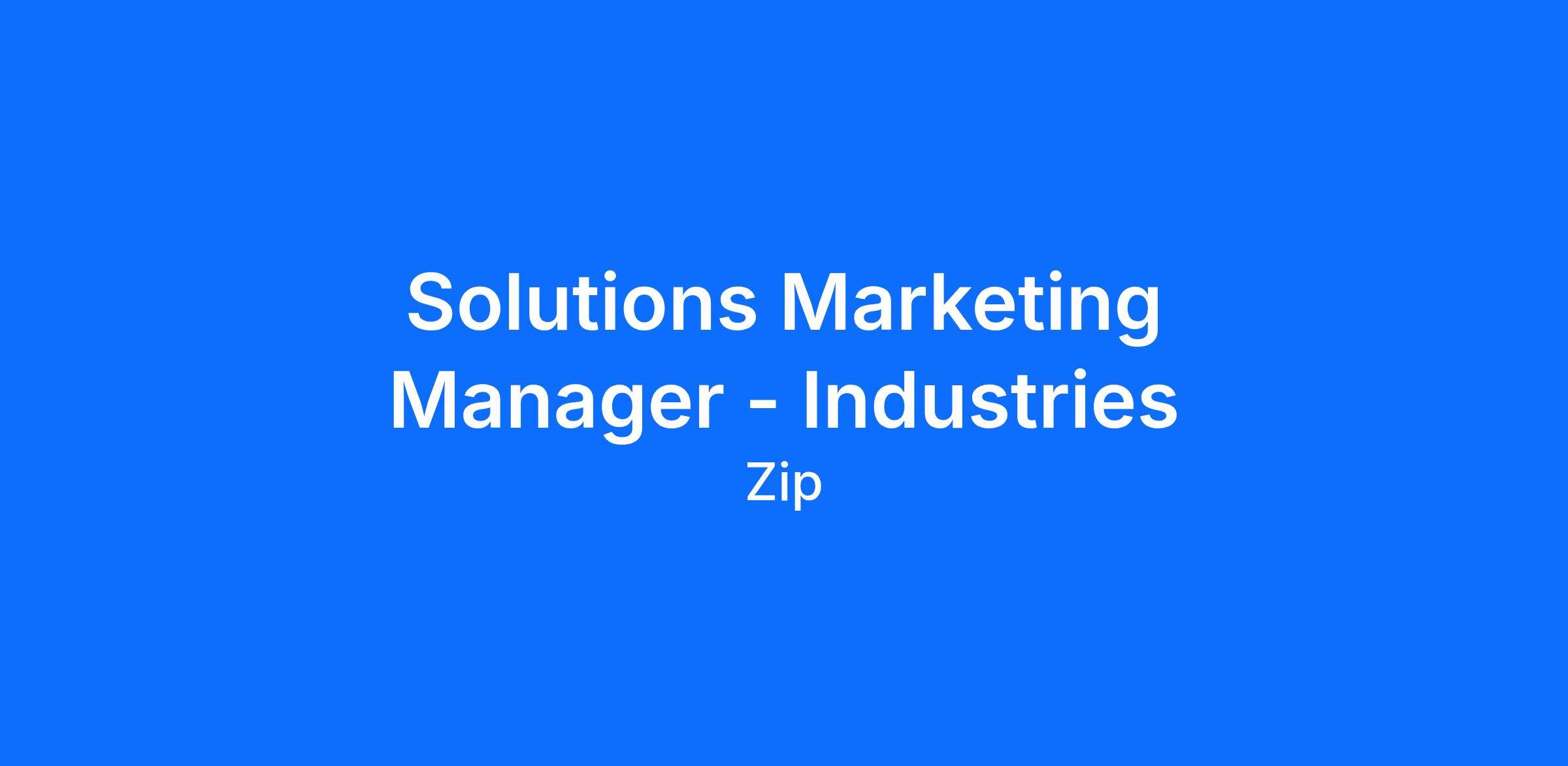 We are looking for a Solutions Marketing Manager, Industries who will help Zip build and scale an industry-led go-to-market motion as we verticalize our sales team. This is a founding solutions marketing role with high ownership, focused on making our platform feel extremely relevant in the industries we care about most.
