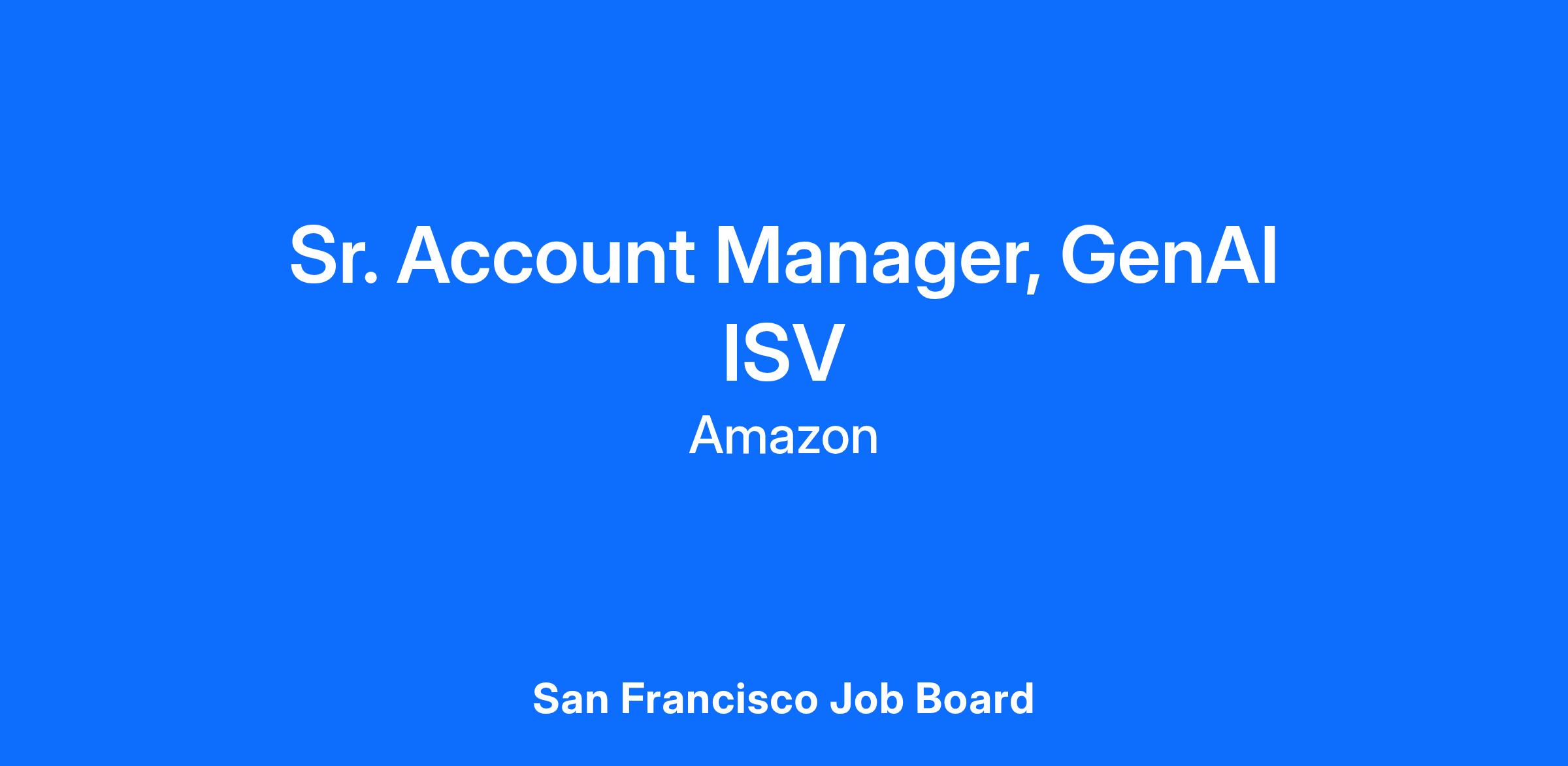 AWS is seeking an experienced Sr. Account Manager for selling to Strategic GenAI ISV’s and to expand the business with our hottest ISV customers. The Sr. Account Manager will be responsible for setting a long-term strategy and executing daily to grow customers. In addition to being a customer, these companies partner with AWS as an ISV and have multiple GTM goals. In the role, you will build and maintain broad relationships, develop and manage opportunities, and facilitate a large team of extended resources.