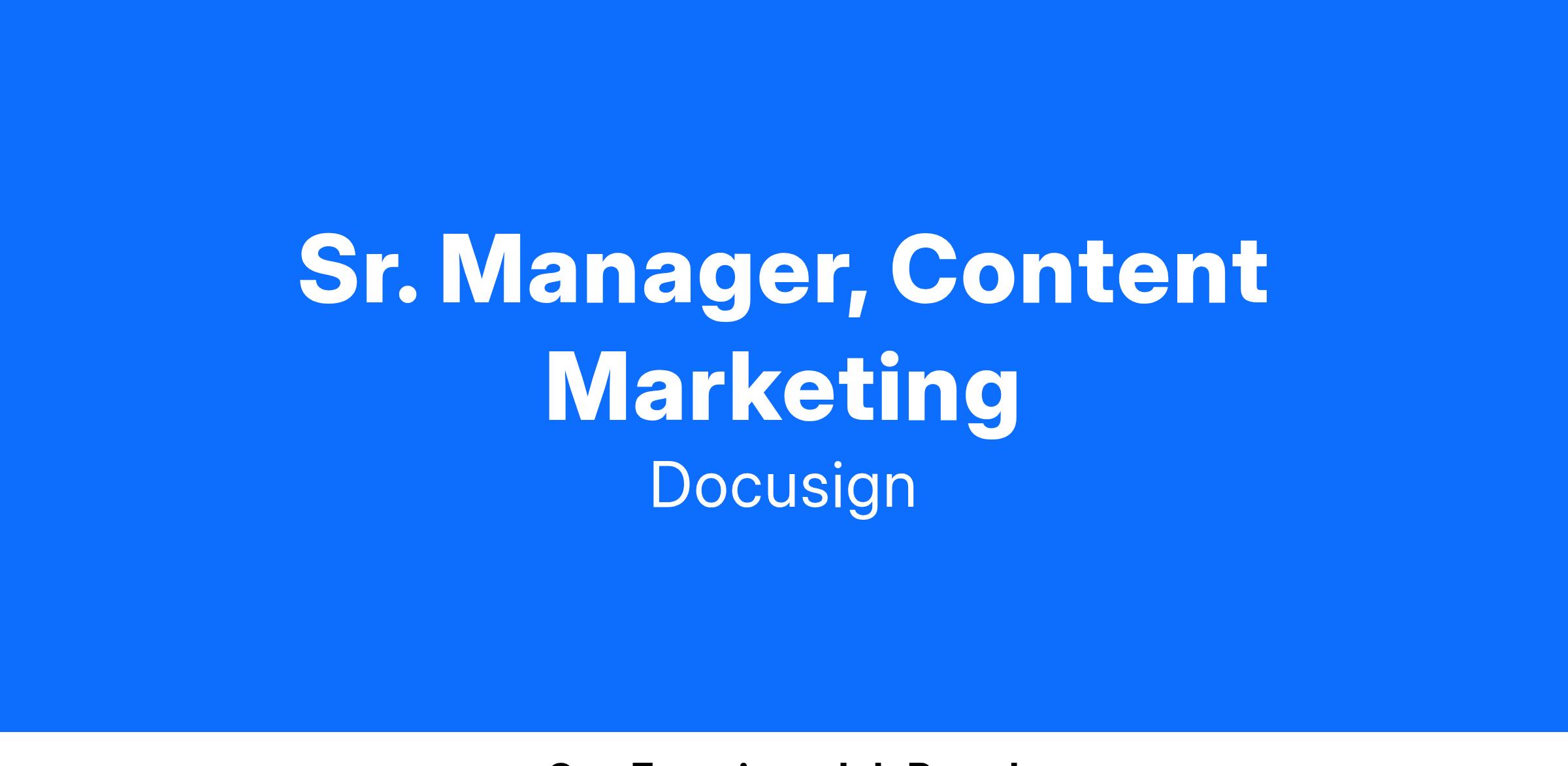 As a Sr. Manager of Content Marketing, you will create multi-format content that aligns with business goals and can be used by various partners across Docusign, including but not limited to Communications, Growth Marketing, Sales and Partner Marketing.