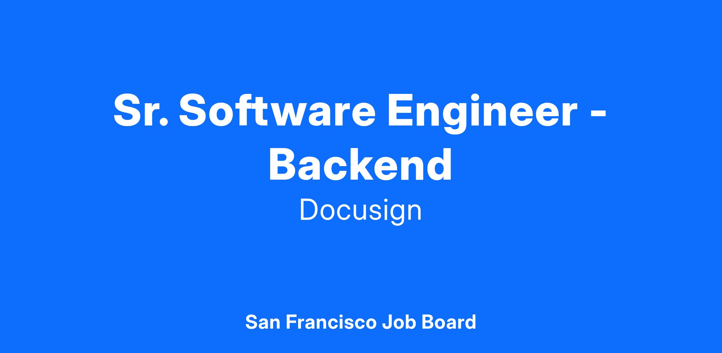 The Sr. Backend Software Engineer will own all aspects of the software development lifecycle including design, development, testing, deployment and maintenance of product features in Docusign software products. You will primarily use the Microsoft technology stack, however we also embrace open source technologies such as Redis, Cassandra and Elasticsearch, and Azure cloud services. You enjoy fast-paced entrepreneurial environments where you can solve difficult problems using current technologies and tools. You collaborate well with other team members when brainstorming, designing, and implementing new solutions. You will also help the team succeed by thinking about ways to improve processes, suggesting ways to make the team more effective, and mentoring and modeling engineering best practices.