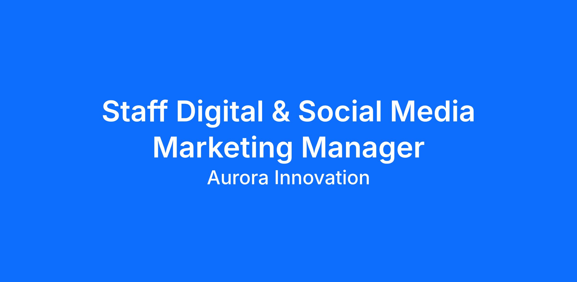 Aurora hires talented people with diverse backgrounds who are ready to help build a transportation ecosystem that will make our roads safer, get crucial goods where they need to go, and make mobility more efficient and accessible for all. We’re searching for a Staff Digital & Social Media Marketing Manager.