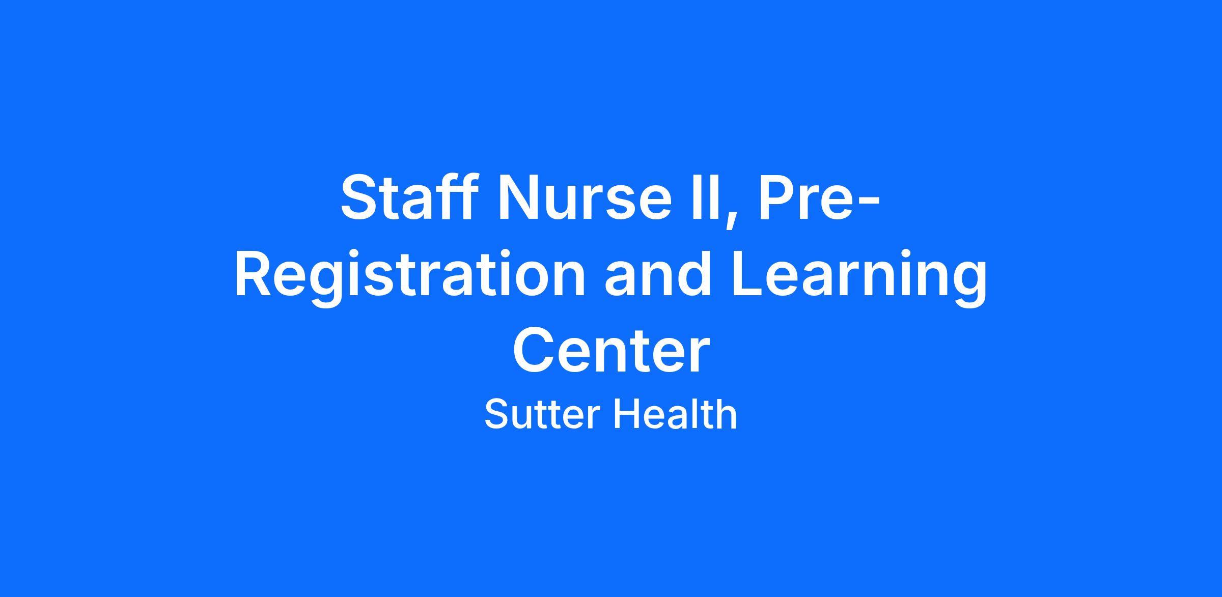 Pay Range is $89.55 to $118.73 / hourThe compensation range may vary based on the geographic location where the position is filled. Total compensation considers multiple factors, including, but not limited to a candidateβs experience, education, skills, licensure, certifications, departmental equity, training, and organizational needs. Base pay is only one component of Sutter Healthβs comprehensive total rewards program. Eligible positions also include a comprehensive benefits package.