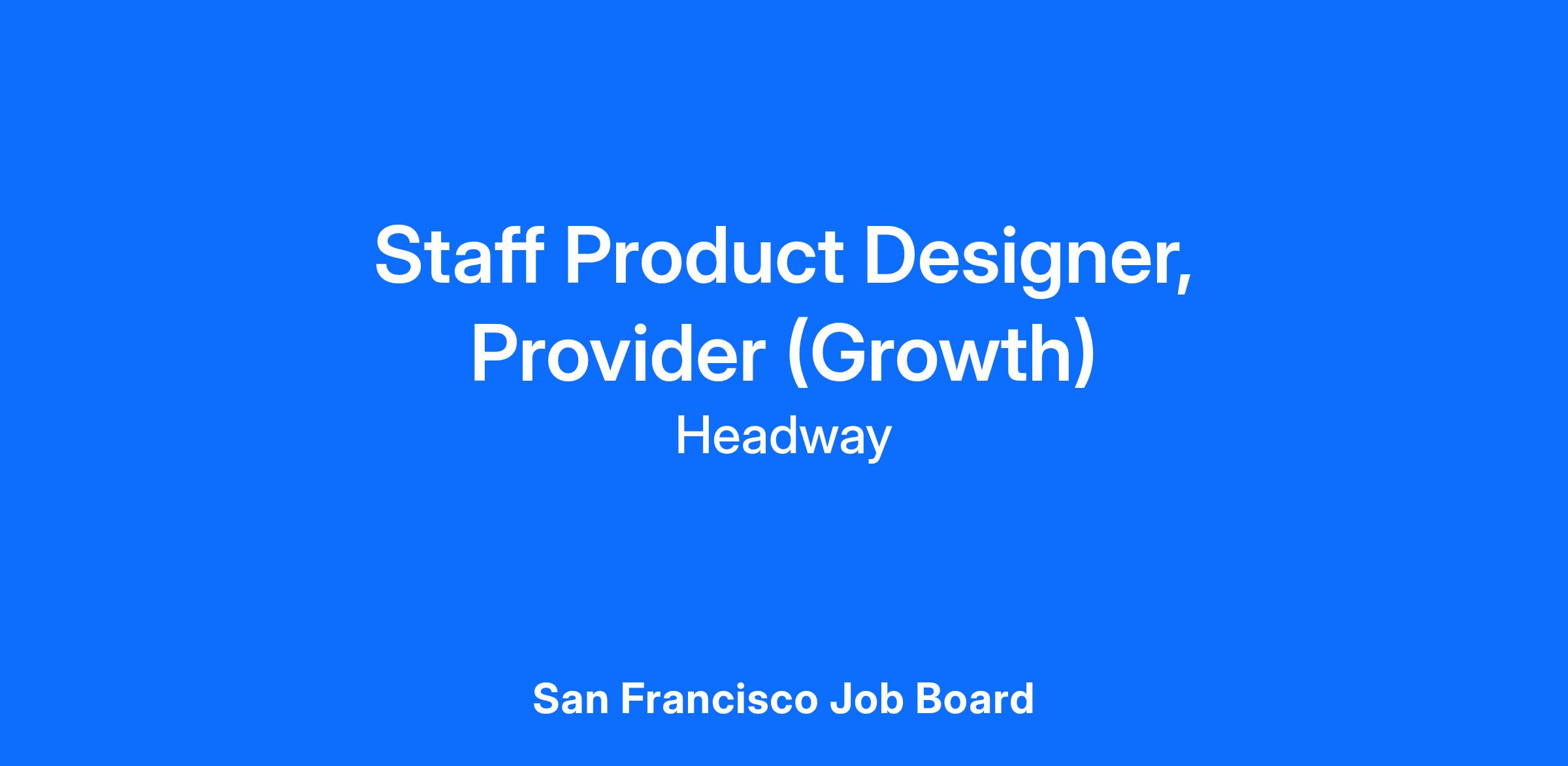 At Headway, we're building the largest national network of therapists who accept insurance - and making mental healthcare radically more accessible in the process. Our ability to serve patients starts with providers. As a Staff Designer for provider growth, you’ll lead the design vision and execution for how we attract, onboard, and activate providers on Headway.