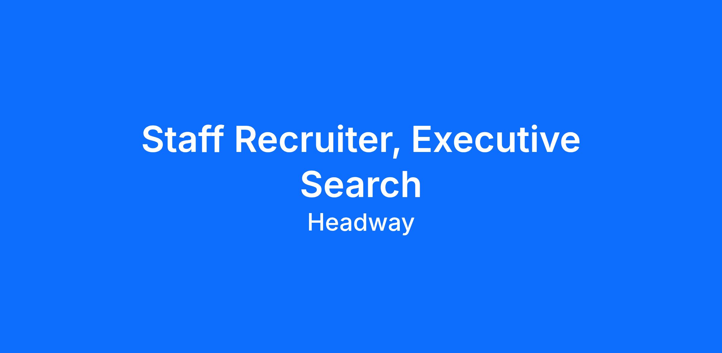Headway is hiring an experienced Staff Recruiter to lead complex, executive and senior-level searches that will shape the next stage of our company’s growth. In this role, you’ll own and drive high-impact searches across Product, Engineering, Design, Data, Security, Operations, and G&A, partnering directly with senior leaders and executives to design the right hiring strategy, shape talent bar, and deliver exceptional outcomes.