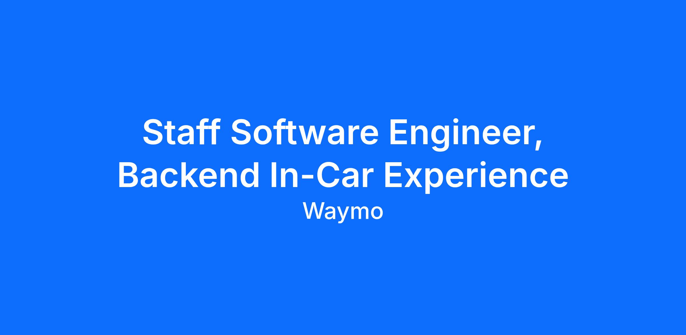At Waymo, we are building the world's most experienced driver. The In-Car Experience team is at the center of how our riders interact with our autonomous vehicle technology. We design and build the user-facing software and systems within the car, creating a safe and intuitive experience for every trip. Join us to define the future of in-car interactions for autonomous ride-hailing.