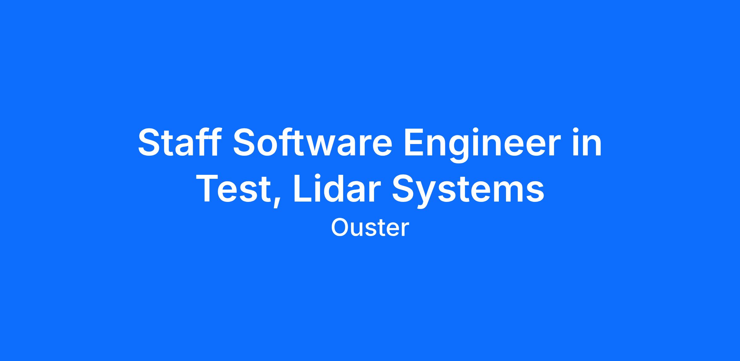 As a Staff Software Engineer in Test, you will be the architect and owner of the automated test framework for our cutting-edge Ouster lidar sensor software interface. You will design, build, and maintain a robust system that ensures our software is reliable, performant, and bug-free before it reaches our customers in the robotics, industrial automation, and automotive industries. While you'll be a key member of the Quality organization, you will work in close collaboration with the Design engineering team to integrate testing early and often in the development lifecycle. Your work will be critical to guaranteeing the world-class quality and reliability of our perception systems.