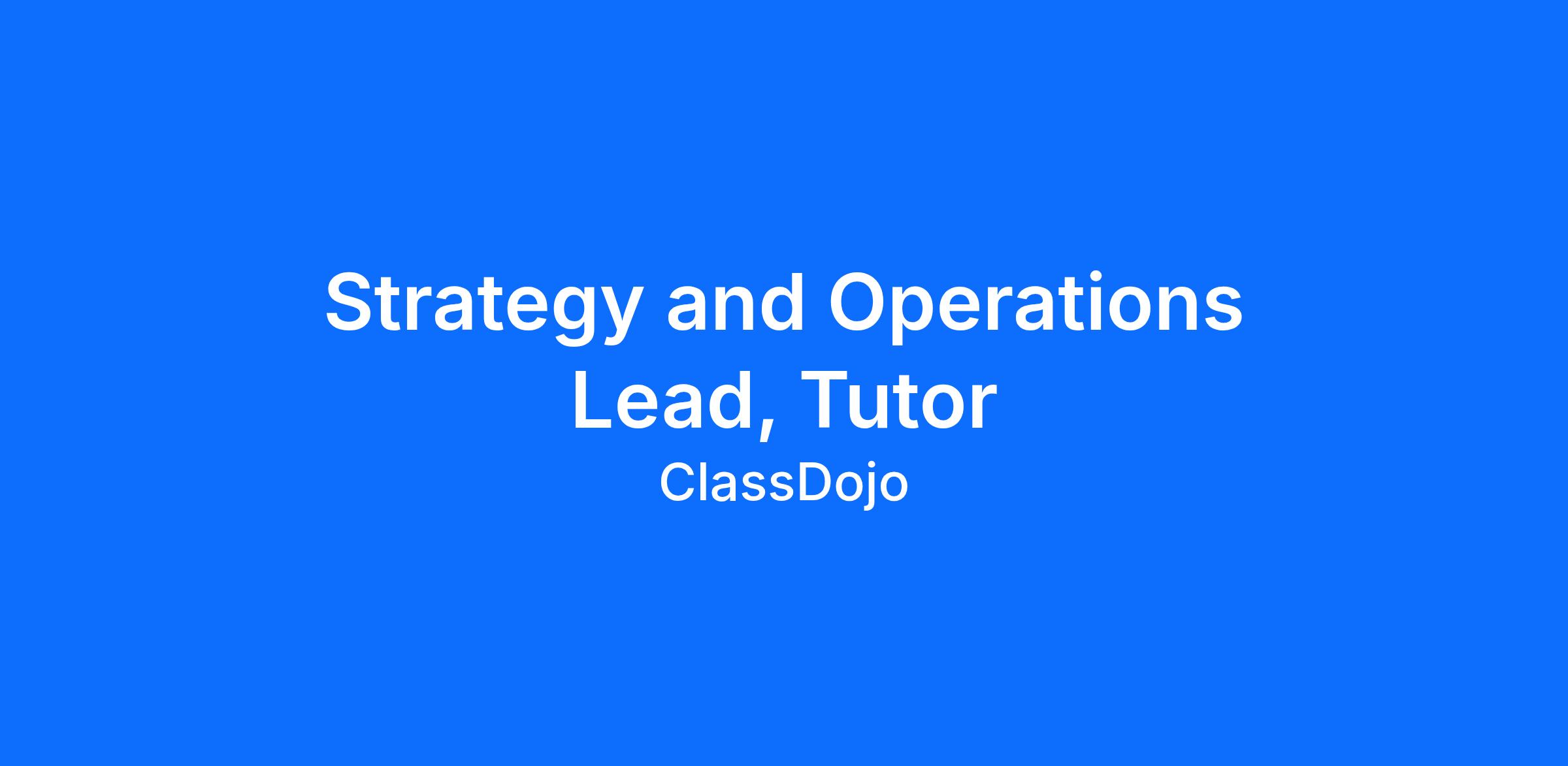 We’re looking for a Strategy and Operations Lead to drive some of the most important and least-defined priorities within our Tutor business.