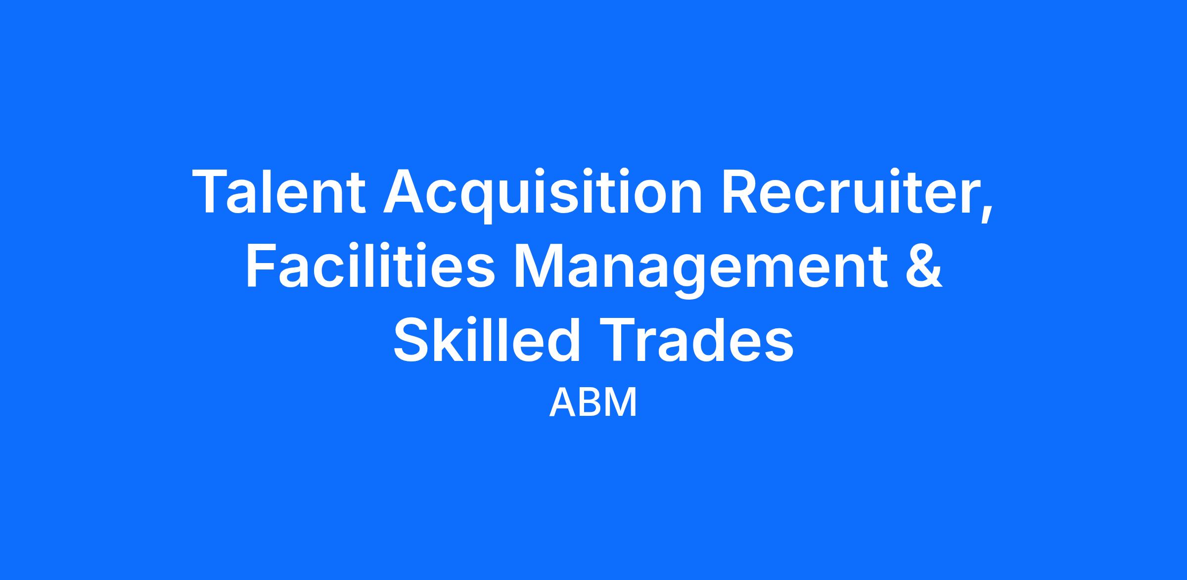 DescriptionABM is seeking a highly motivated Talent Acquisition Recruiter, Facilities Management & Skilled Trades to join our dynamic team and assist in attracting and retaining top talent to support our growing business in the NoCal Market!