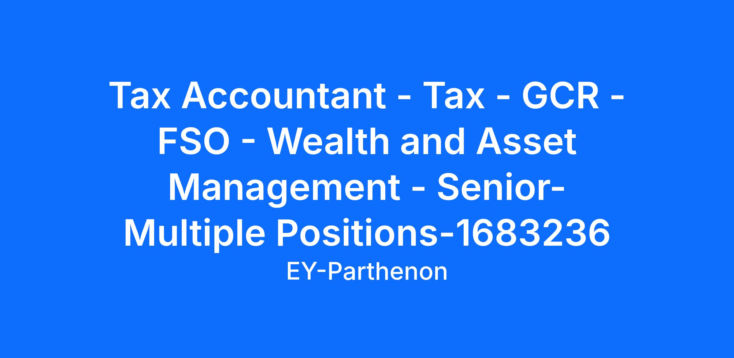 Tax Accountant, Tax, Global Compliance Reporting (Financial Services Office - Wealth and Asset Management) (Senior) (Multiple Positions) (1683236), Ernst & Young U.S. LLP, San Francisco, CA.