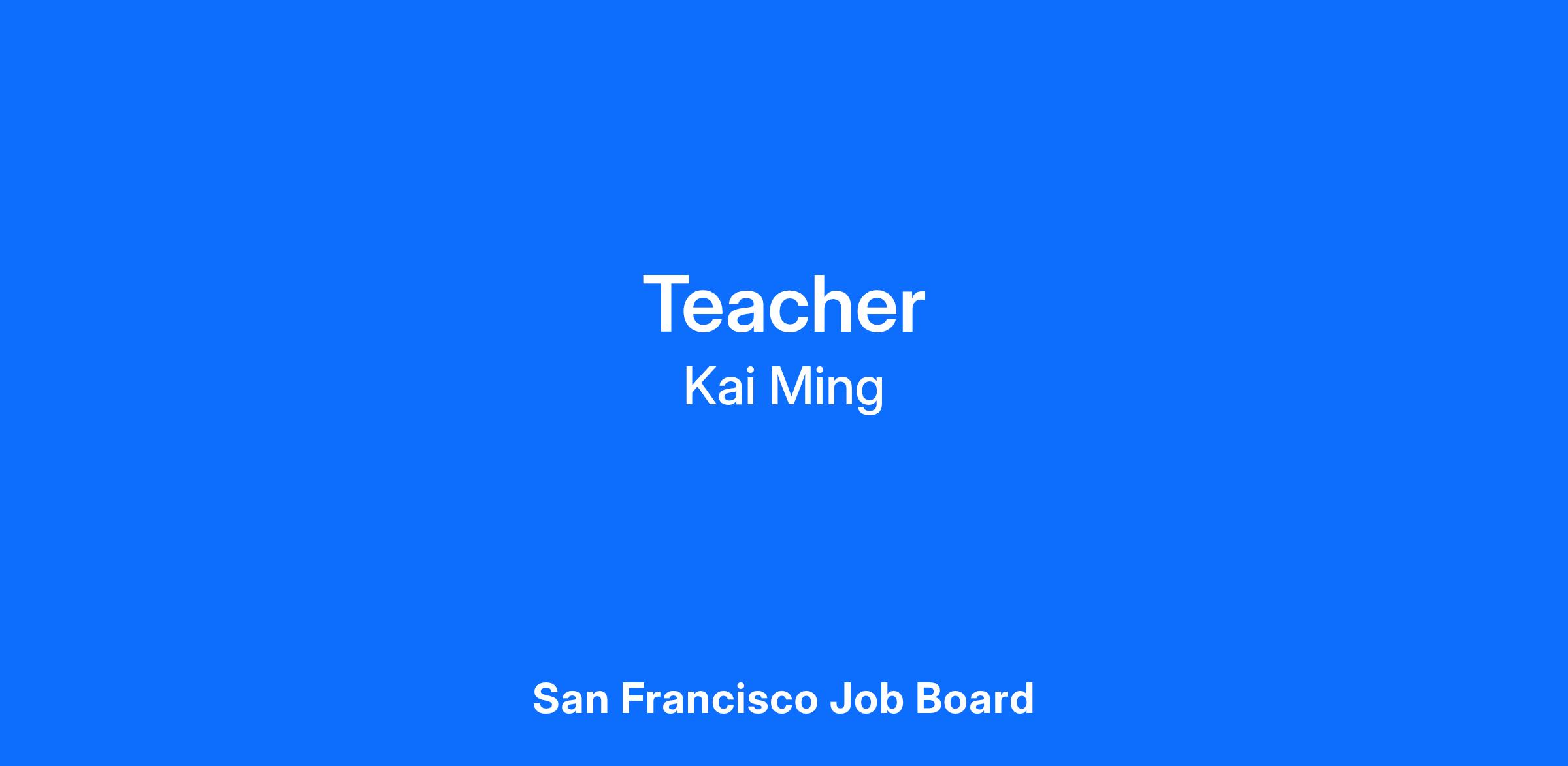 Qualifications: Kai Ming is looking for experienced classroom personnel who can attend to the care and education of young children in a high quality setting to foster their school readiness of and establish a foundation for success in school and life.