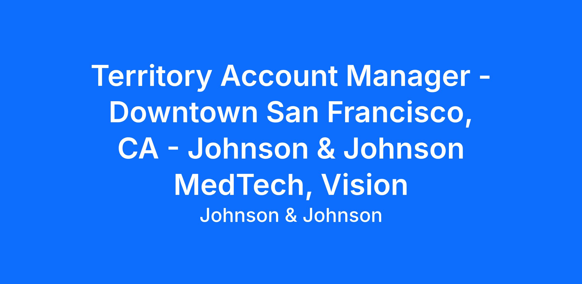 We are searching for the best talent for a Territory Account Manager located in San Francisco, CA.