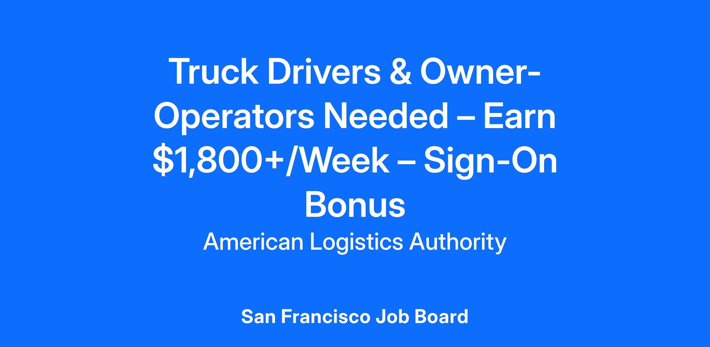 ruck Drivers & Owner-Operators Needed – Earn $1,800+/Week – Sign-On Bonus