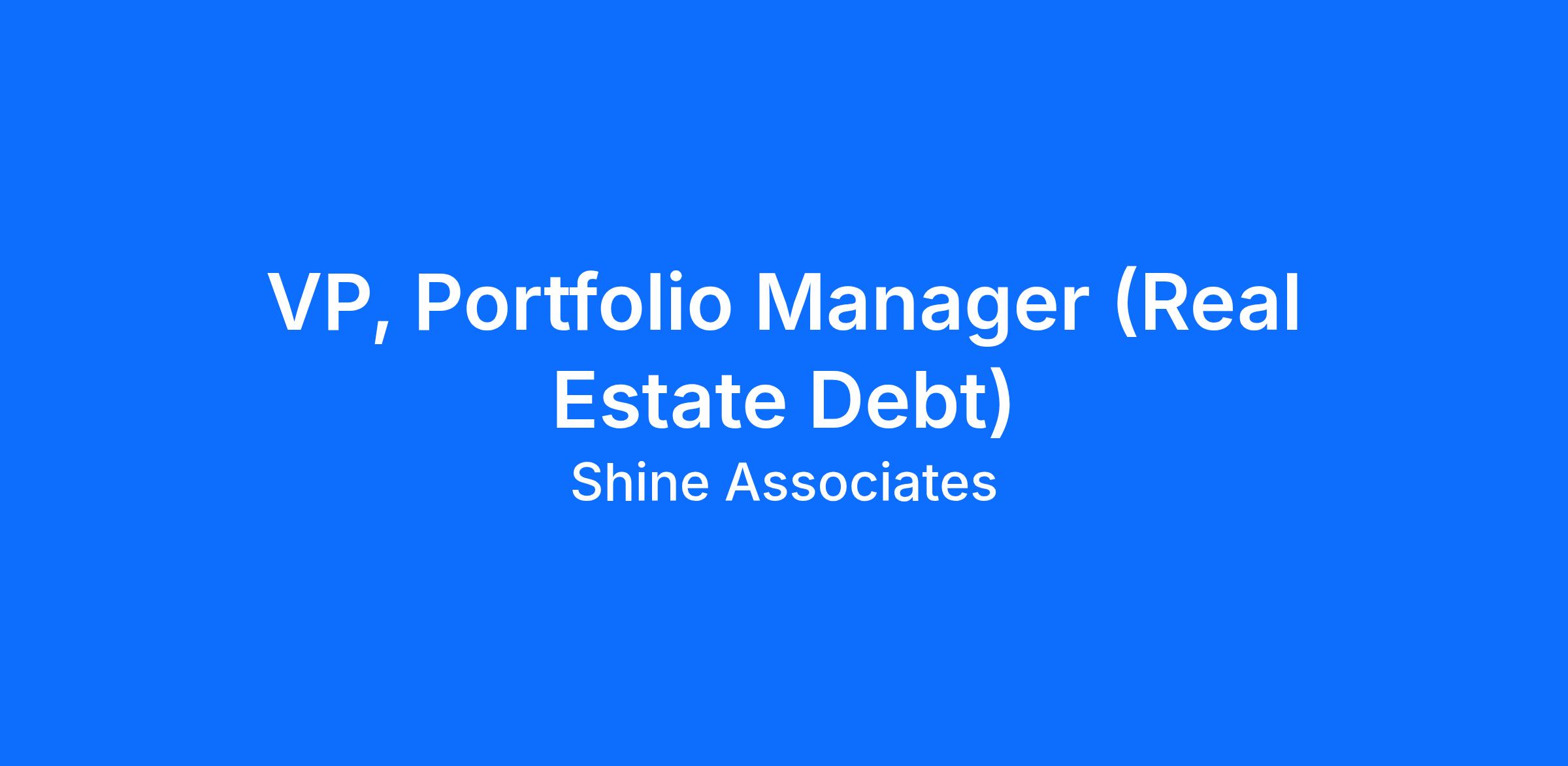 VP, PORTFOLIO MANAGER, REAL ESTATE DEBT